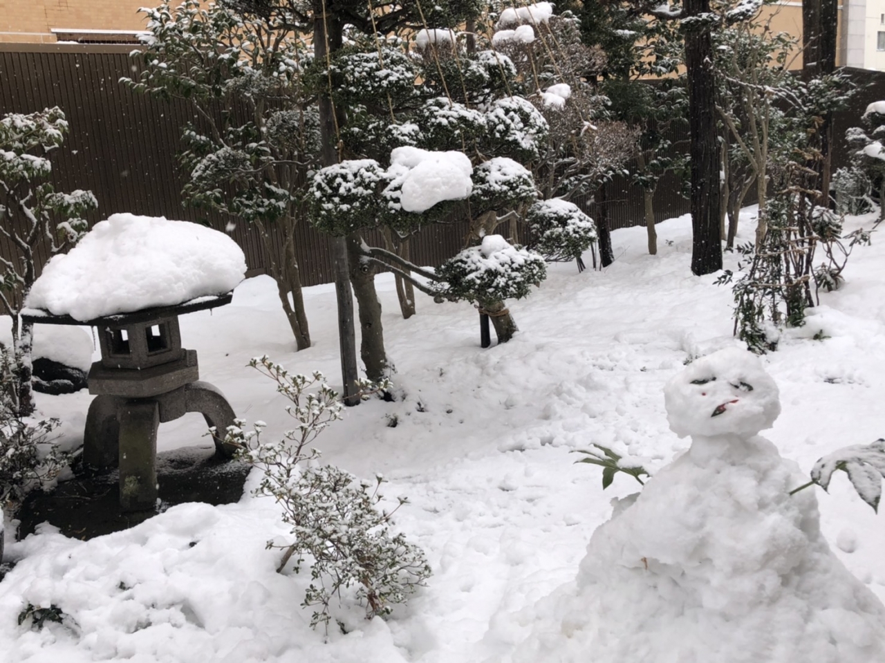 雪が積もった庭に雪だるまも風情があってよいですね。