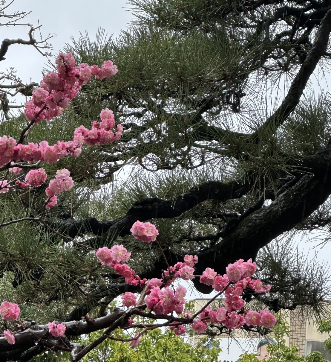 3本ありますが一番目立つのは若い紅梅ですね。